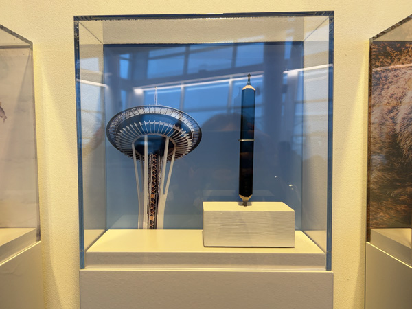 | ↑シアトルの名所、スペース・ニードルも鉛筆彫刻に。 |