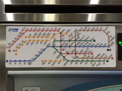 台北MRTは台北市とその周辺の都市とを結ぶ鉄道網だ。片道切符の購入方法は、上述の桃園MRTと少しだけ違った。まず、券売機の上にある運賃表で目的地までの運賃を調べる。