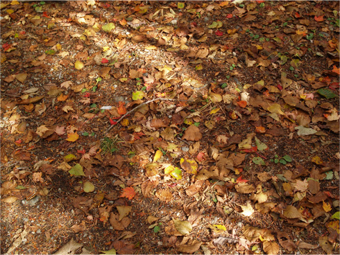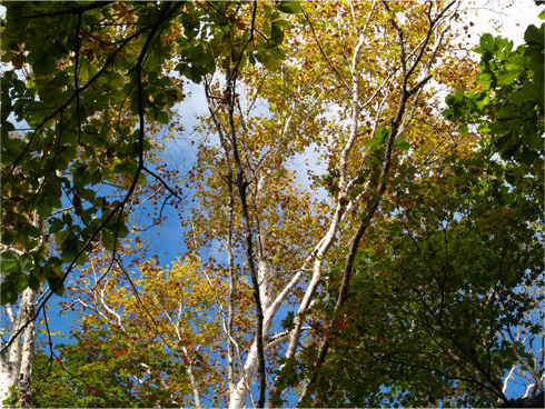 | 緑ががんばっているが、季節には逆らえないことを奥のシラカバが告げている。 |