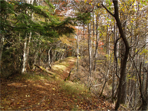 | 夜叉神峠から高谷山へ向かう山道 |