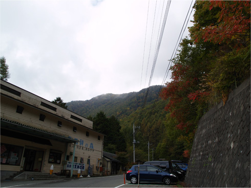 | 夜叉神峠の登山道入り口付近。お店の先に、広河原方面行きバスの停留所と洗面所がある。そのさらに先に夜叉神ゲートがある。帰りに撮影。 |
