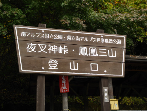 さて、バス停から甲府方面に少し戻った左手に、夜叉神峠登山道の入り口がある。標高1,380m、秋の高地では吐く息が白くなる。「まだ10月なのに」は、平地の感覚に過ぎない。じっとしていたら、足元からしんしんと冷えてきた。準備をしながら体を動かし、夜明けの光が差すと同時に登山を開始した。