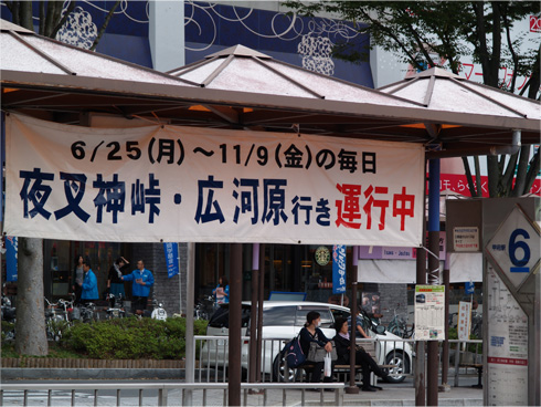 | 無事に登山を終え、正午、甲府駅南口のバスターミナルに戻ってきた。「6番」は芦安(あしやす)方面行き路線バスの乗り場だが、夜叉神峠・広河原方面行き登山バスもここから出発する。 |