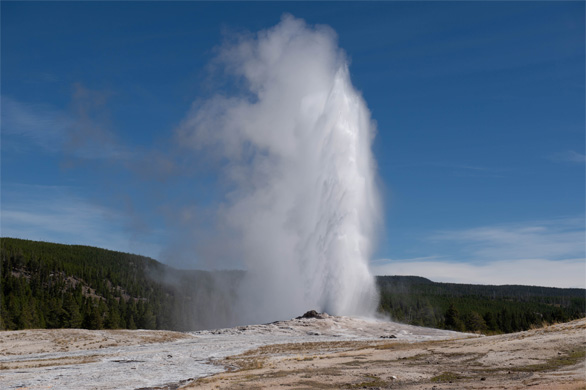 この温泉は一定の間隔で熱水を噴出する「間欠泉」(ガイザー)で、規則正しく噴出することから、「忠実な」を意味する「フェイスフル」(faithful)という名前が付いたそうだ。ガイドさんが、「この泉は吹き出す時間が正確にわかるので本当に助かります」と話していたが、その言葉から自然を案内する難しさが伝わってきた。
