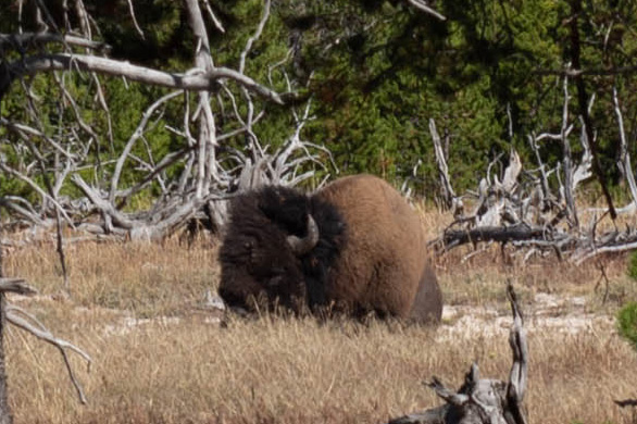 | ↑遠くにバイソンが寝そべっていた。 |