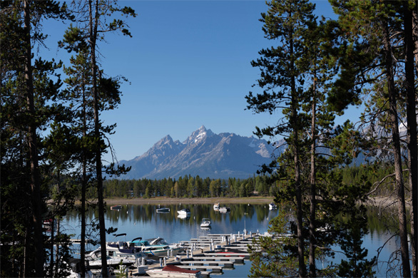 ジャクソン・レイク・ロッジは国立公園局が所有する宿泊施設で、ショッピングセンターやカフェもある。ジャクソン湖の岸から1kmほど離れているため、湖はあまり見えないが、秋色の草原と青い山々の対比がすばらしかった。