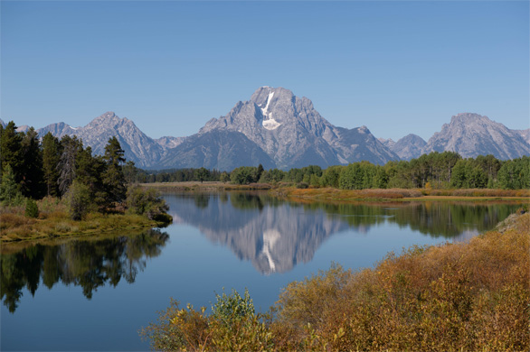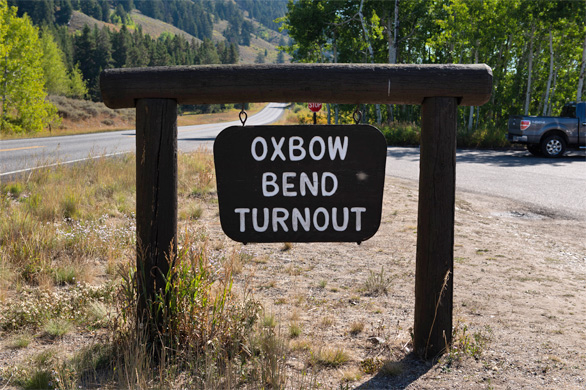 ジャクソン湖の東岸から流れ出たスネーク川が南へと向きを変えるあたりに、「オクスボウ・ベンド」という自動車の待避所がある。「風の穏やかな日は、川面に映るティトン山脈がとてもきれいなんです。今日は絶好の日和ですから、ちょっと寄り道しましょう」と、ガイドさんが案内してくれた。