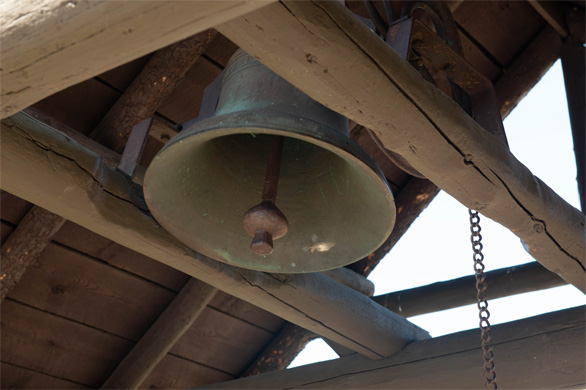 | ↑礼拝所の敷地の入り口に鐘がある。下をくぐる観光客も自由に鳴らすことができる。澄んだ音が、澄んだ空気に響き渡る。 |