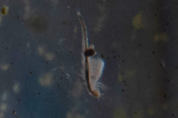 | ↑グレートソルト湖の高濃度の塩水に唯一生息する動物、甲殻類のアルテミア。ビジターセンターの水槽を写す。乾燥させた卵を塩水に戻すと1日で孵化する珍しさから、アメリカでも日本でもアルテミアの飼育セットが売られている。 |